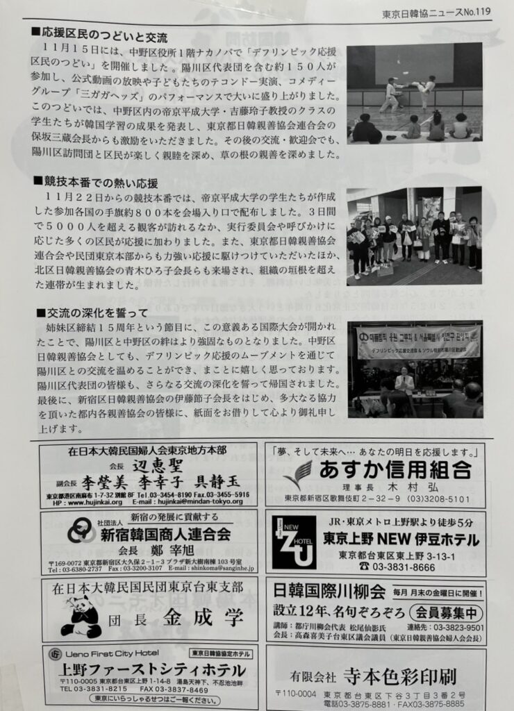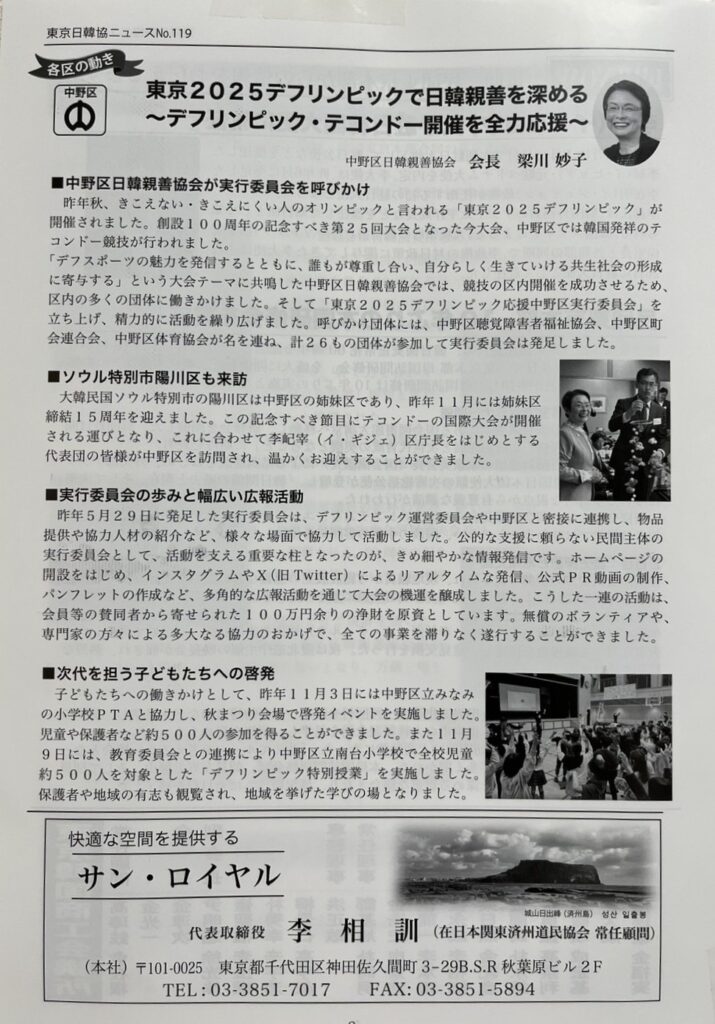 都日韓ニュースに投稿しました Uncategorized 2026.03.01 都日韓ニュースに中野区日韓親善協会が取り組んだ東京2025デフリンピック応援中野区実行委員会の活動の報告が掲載されました。
